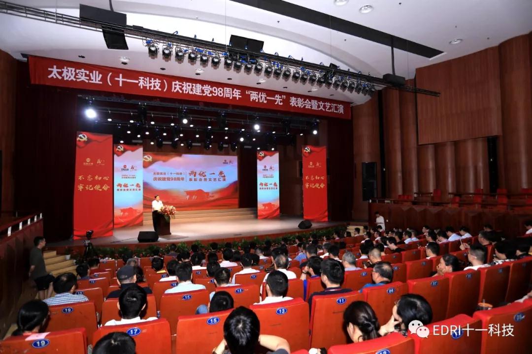 6月16日晚,浙江嘉興南湖音樂廳,紅色炫動(dòng),太極實(shí)業(yè)(十一科技)慶祝建黨98周年“兩優(yōu)一先”表彰會(huì)暨文藝匯演,華美上演。